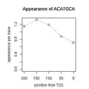 | GO ID | term | -Log(p) | number of {A; genes in a GO} | numver of {B; genes with this heptamer} | {A} x {B} |