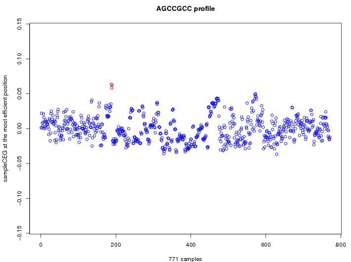 List of predicted TFs whose mRNA profiles are correlated (|r| > 0.4, up to 15 TFs) with CEG profile of AGCCGCC.
