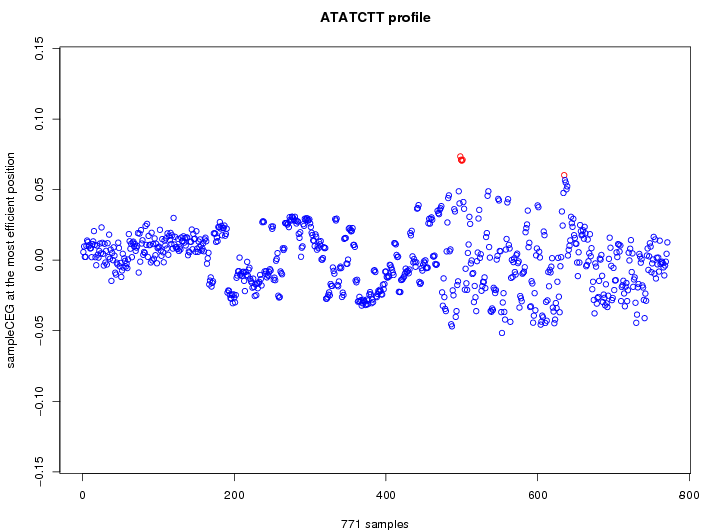 | GO ID | term | -Log(p) | number of {A; genes in a GO} | numver of {B; genes with this heptamer} | {A} x {B} |