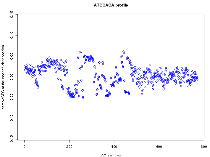 List of predicted TFs whose mRNA profiles are correlated (|r| > 0.4, up to 15 TFs) with CEG profile of ATCCACA.