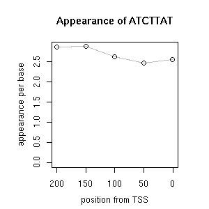 | GO ID | term | -Log(p) | number of {A; genes in a GO} | numver of {B; genes with this heptamer} | {A} x {B} |