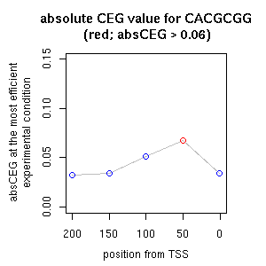 List of predicted TFs whose mRNA profiles are correlated (|r| > 0.4, up to 15 TFs) with CEG profile of CACGCGG.