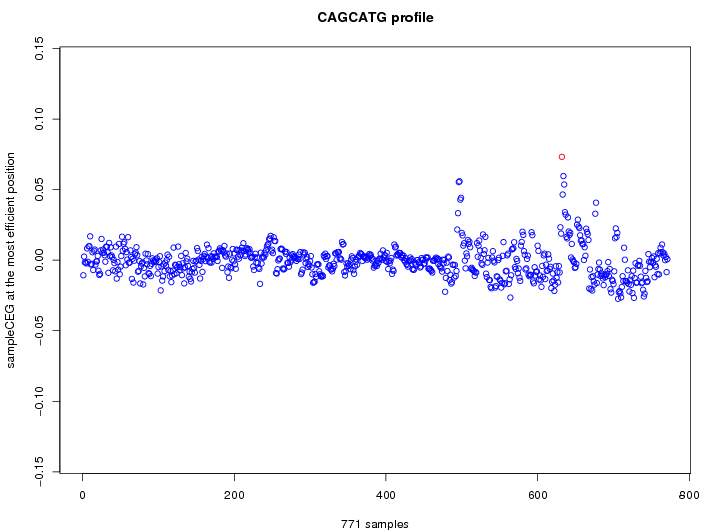 List of predicted TFs whose mRNA profiles are correlated (|r| > 0.4, up to 15 TFs) with CEG profile of CAGCATG.