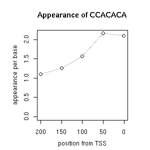 | GO ID | term | -Log(p) | number of {A; genes in a GO} | numver of {B; genes with this heptamer} | {A} x {B} |