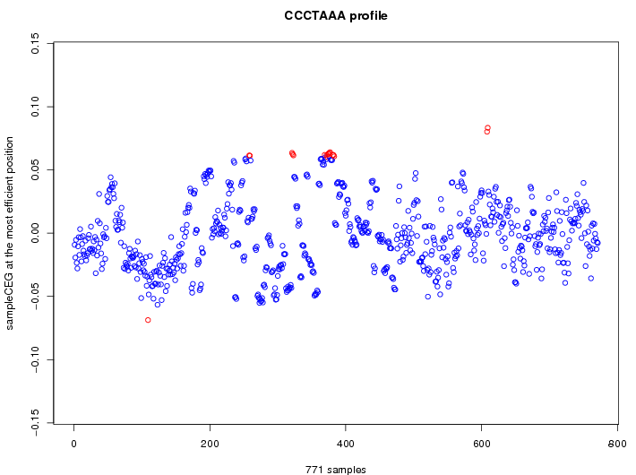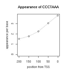 | GO ID | term | -Log(p) | number of {A; genes in a GO} | numver of {B; genes with this heptamer} | {A} x {B} |