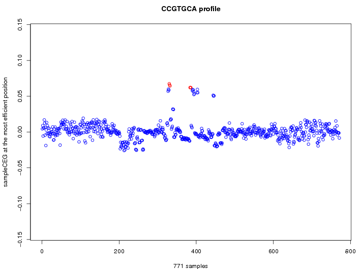List of predicted TFs whose mRNA profiles are correlated (|r| > 0.4, up to 15 TFs) with CEG profile of CCGTGCA.