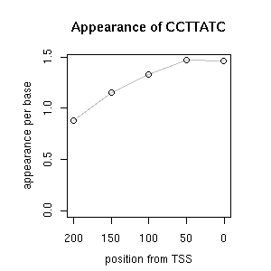 | GO ID | term | -Log(p) | number of {A; genes in a GO} | numver of {B; genes with this heptamer} | {A} x {B} |