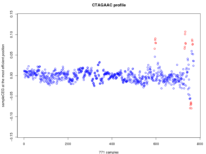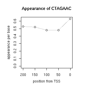 | GO ID | term | -Log(p) | number of {A; genes in a GO} | numver of {B; genes with this heptamer} | {A} x {B} |