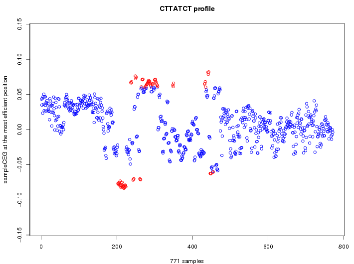 List of predicted TFs whose mRNA profiles are correlated (|r| > 0.4, up to 15 TFs) with CEG profile of CTTATCT.