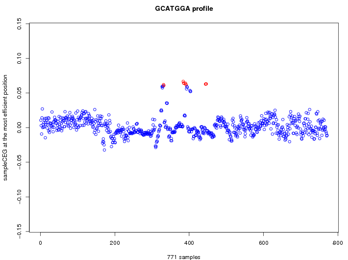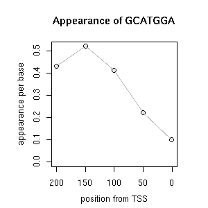 | GO ID | term | -Log(p) | number of {A; genes in a GO} | numver of {B; genes with this heptamer} | {A} x {B} |