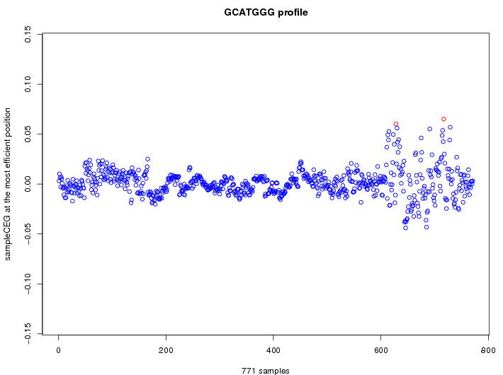 | GO ID | term | -Log(p) | number of {A; genes in a GO} | numver of {B; genes with this heptamer} | {A} x {B} |