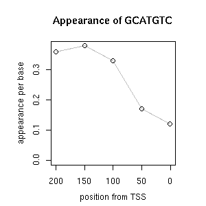 Analysis of functional categories (BP or CC*) related to presence of GCATGTC