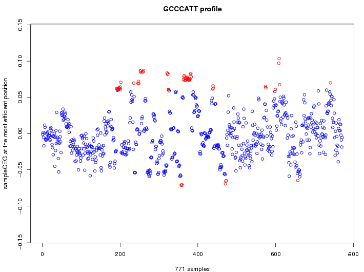 | GO ID | term | -Log(p) | number of {A; genes in a GO} | numver of {B; genes with this heptamer} | {A} x {B} |