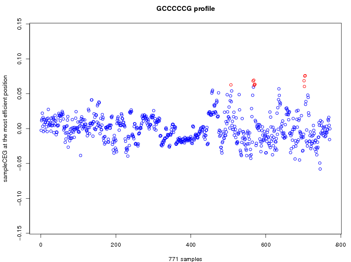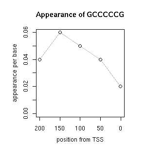 | GO ID | term | -Log(p) | number of {A; genes in a GO} | numver of {B; genes with this heptamer} | {A} x {B} |