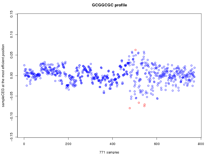 List of predicted TFs whose mRNA profiles are correlated (|r| > 0.4, up to 15 TFs) with CEG profile of GCGGCGC.