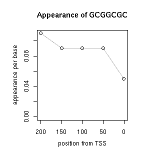 Analysis of functional categories (BP or CC*) related to presence of GCGGCGC