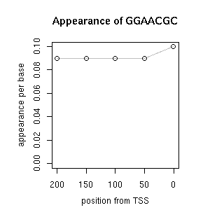 | GO ID | term | -Log(p) | number of {A; genes in a GO} | numver of {B; genes with this heptamer} | {A} x {B} |