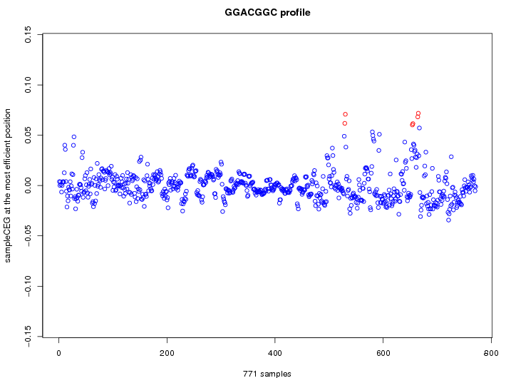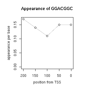 | GO ID | term | -Log(p) | number of {A; genes in a GO} | numver of {B; genes with this heptamer} | {A} x {B} |