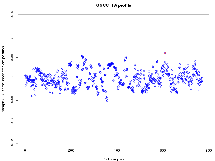 List of predicted TFs whose mRNA profiles are correlated (|r| > 0.4, up to 15 TFs) with CEG profile of GGCCTTA.
