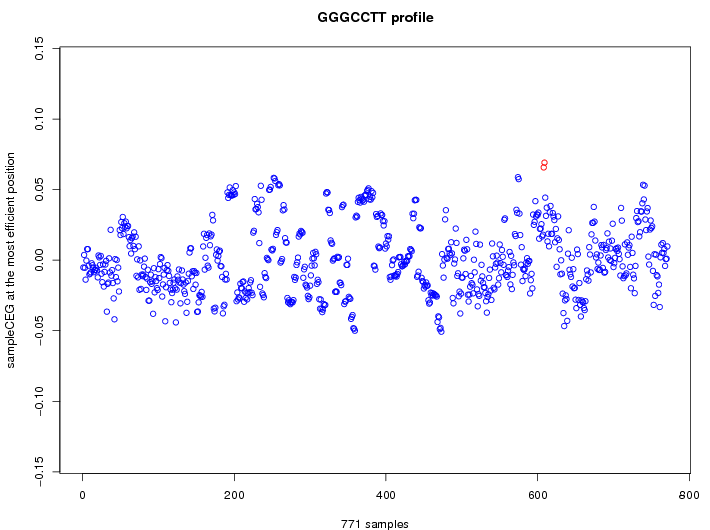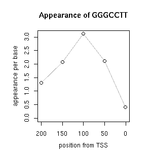| GO ID | term | -Log(p) | number of {A; genes in a GO} | numver of {B; genes with this heptamer} | {A} x {B} |