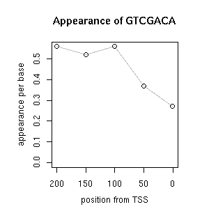 | GO ID | term | -Log(p) | number of {A; genes in a GO} | numver of {B; genes with this heptamer} | {A} x {B} |