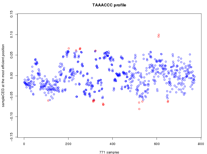 | GO ID | term | -Log(p) | number of {A; genes in a GO} | numver of {B; genes with this heptamer} | {A} x {B} |