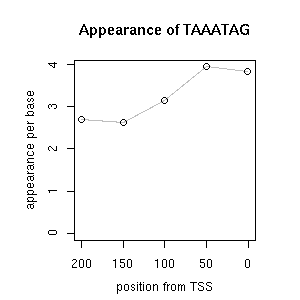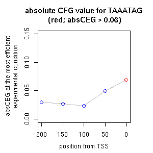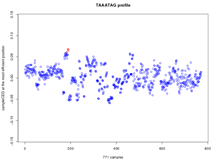 List of predicted TFs whose mRNA profiles are correlated (|r| > 0.4, up to 15 TFs) with CEG profile of TAAATAG.
