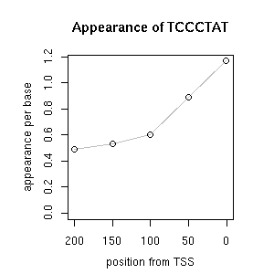 | GO ID | term | -Log(p) | number of {A; genes in a GO} | numver of {B; genes with this heptamer} | {A} x {B} |