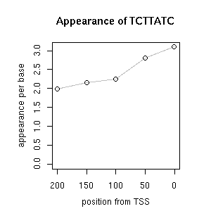 | GO ID | term | -Log(p) | number of {A; genes in a GO} | numver of {B; genes with this heptamer} | {A} x {B} |