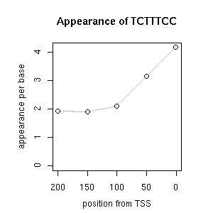 | GO ID | term | -Log(p) | number of {A; genes in a GO} | numver of {B; genes with this heptamer} | {A} x {B} |