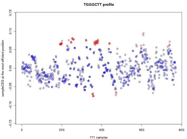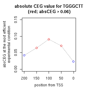 List of predicted TFs whose mRNA profiles are correlated (|r| > 0.4, up to 15 TFs) with CEG profile of TGGGCTT.