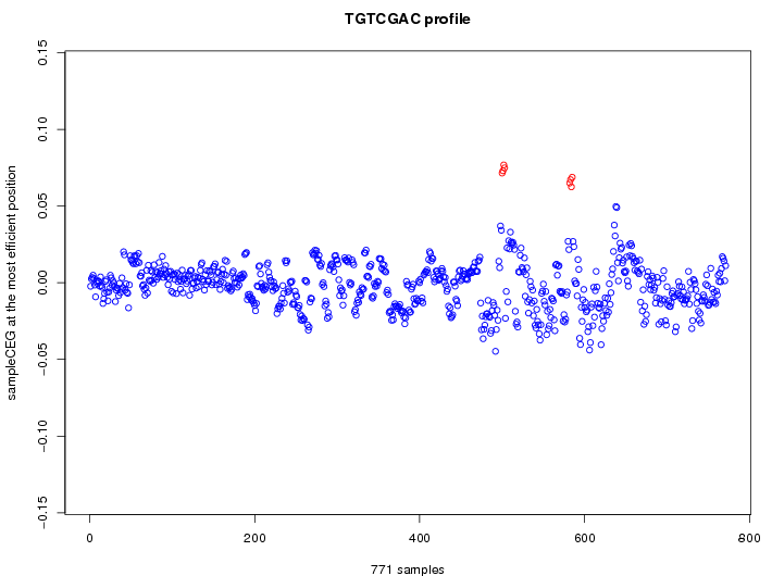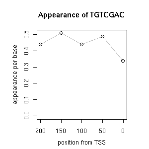 | GO ID | term | -Log(p) | number of {A; genes in a GO} | numver of {B; genes with this heptamer} | {A} x {B} |