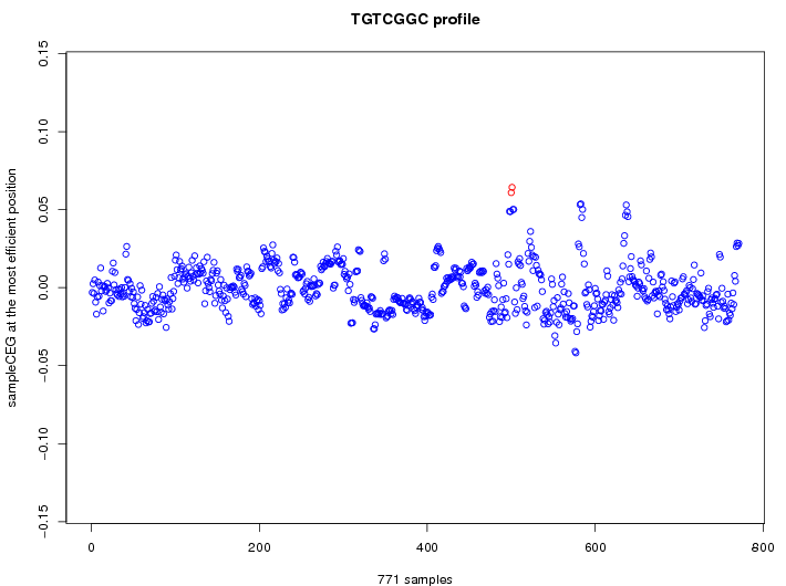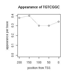 | GO ID | term | -Log(p) | number of {A; genes in a GO} | numver of {B; genes with this heptamer} | {A} x {B} |