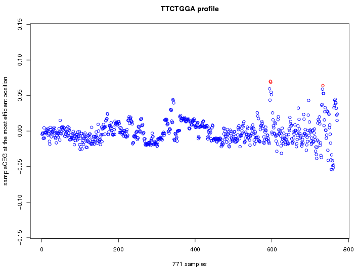 List of predicted TFs whose mRNA profiles are correlated (|r| > 0.4, up to 15 TFs) with CEG profile of TTCTGGA.
