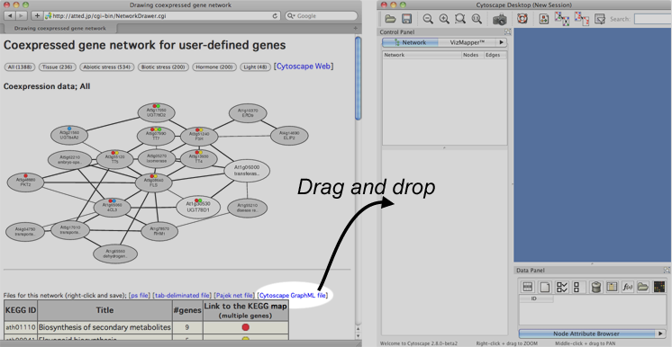 To open the network in Cytoscape, user can simply drag and drop the link of the GraphML file to Cytoscape.