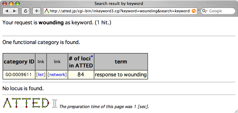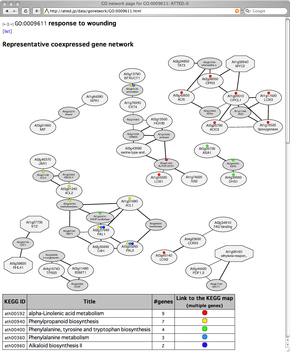 In the page for "response to wounding", coexpressed gene network of representative genes is provided.